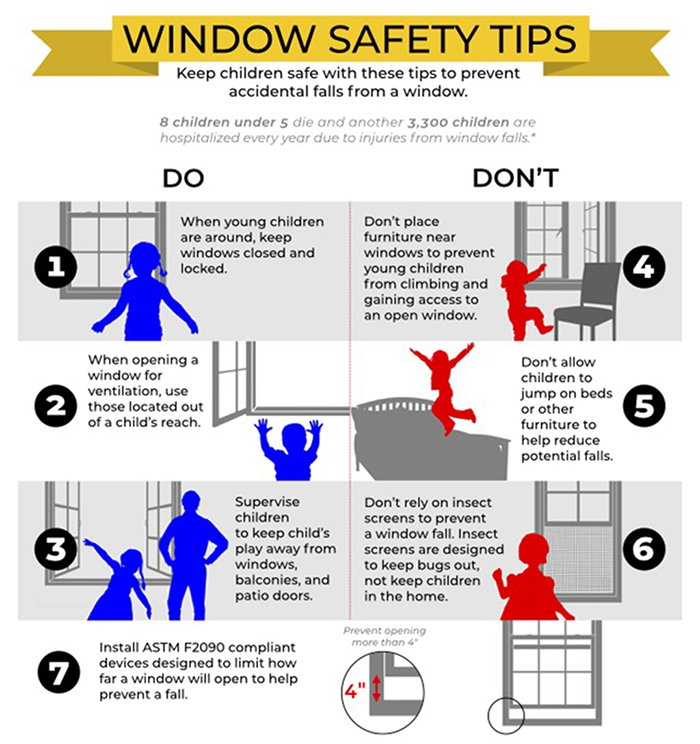 The National Safety Council (NSC) and the Window Safety Task Force work year-round to educate the public on preventing window falls and ensuring your emergency escape routes remain accessible. Here’s their list on how to keep the household safe:
